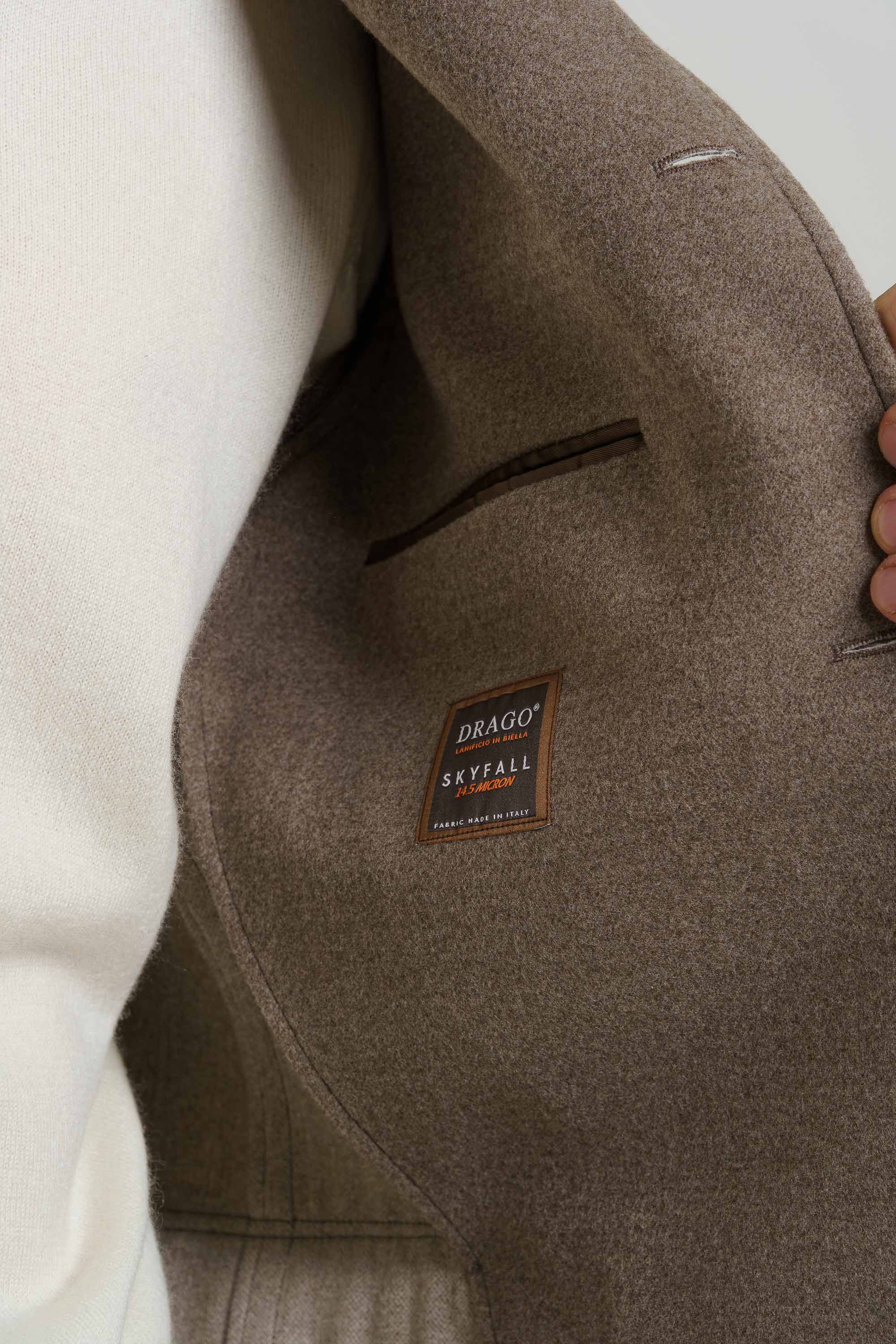 Questa giacca rappresenta l’equilibrio perfetto tra stile contemporaneo e artigianalità sartoriale. Realizzata con tessuto Drago Skyfall 14.5 Micron, uno dei materiali più pregiati prodotti nello storico lanificio biellese, offre una mano incredibilmente morbida, una texture compatta e un comfort superiore. La finezza delle fibre – appena 14.5 micron – garantisce leggerezza, resistenza e una sensazione di lusso assoluto a contatto con la pelle.
