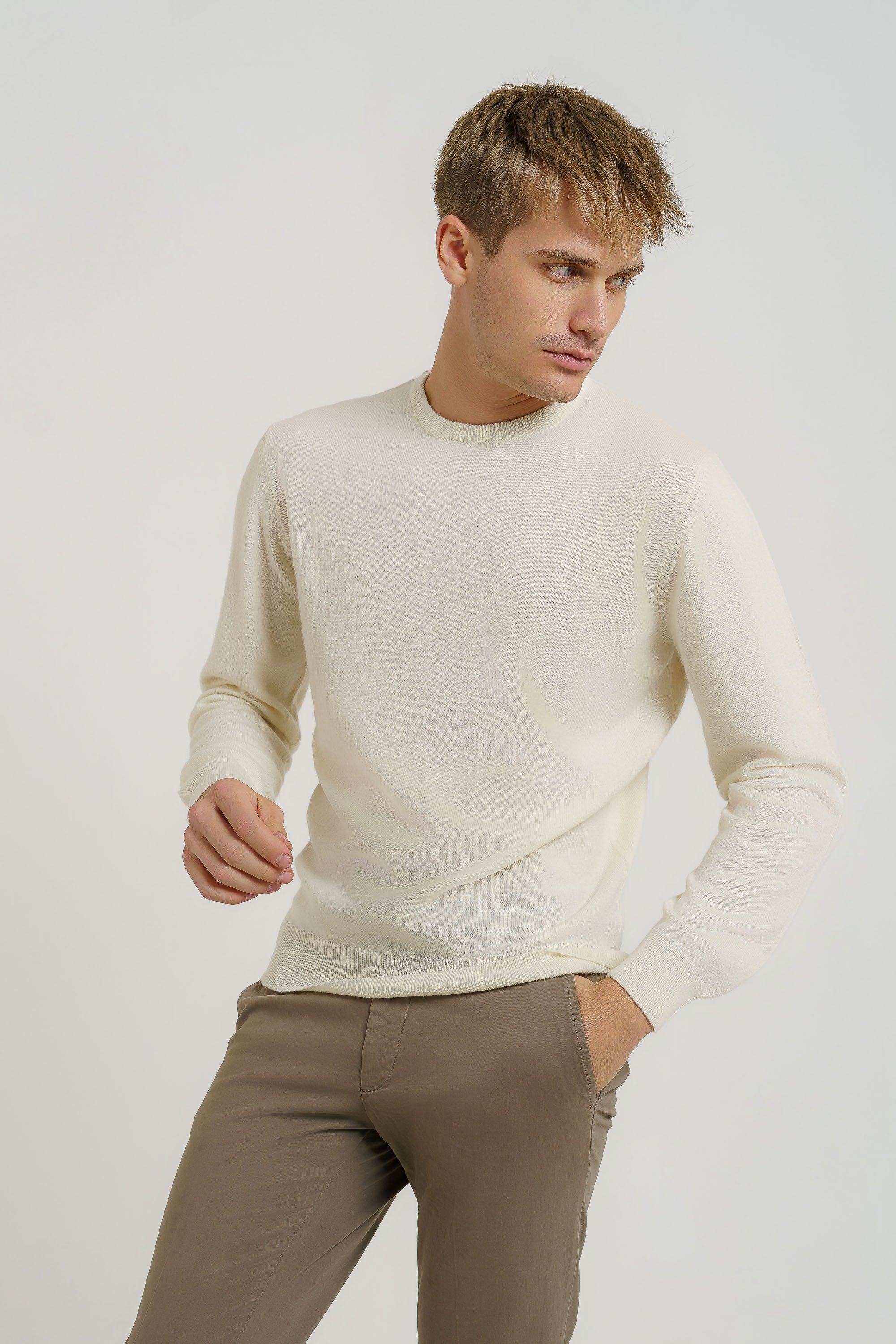 Pullover girocollo , 100% cashmere , finezza12, peso perfetto per l'inverno da portare anche come sotto giacca. Il modello è alto 1,85 e indossa la taglia 52