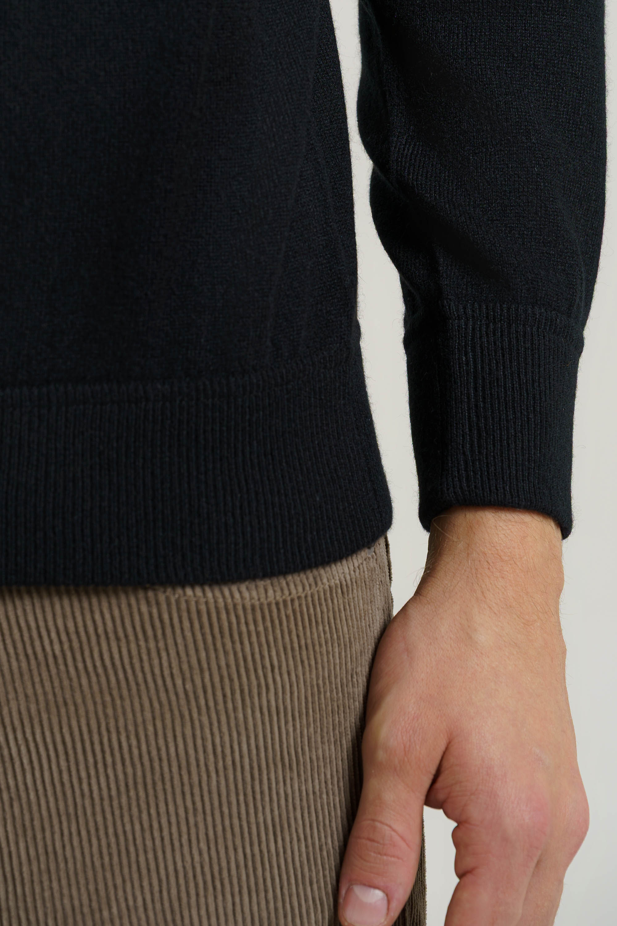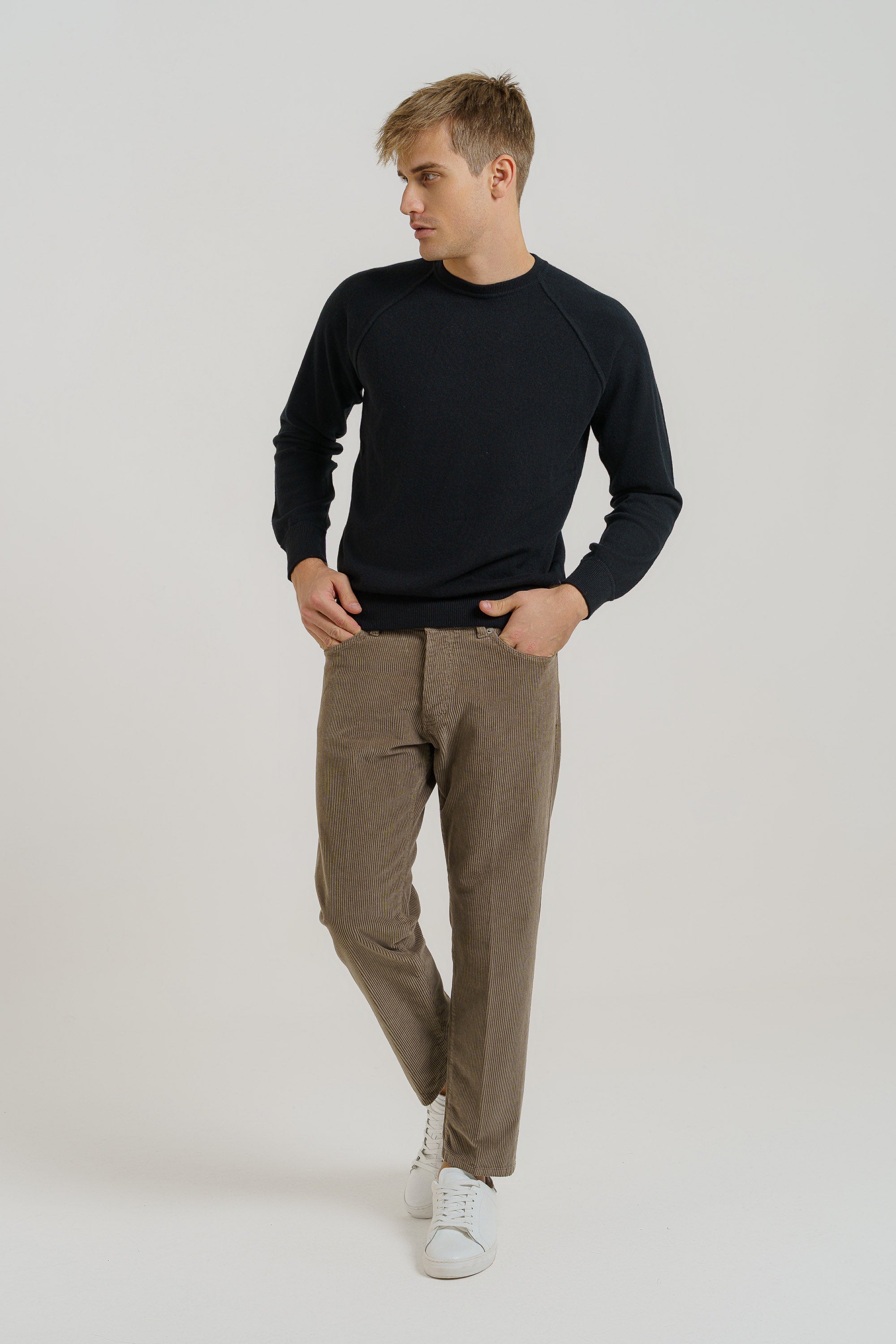 Pullover taglio fellpa, 100% cashmere , finezza 12, peso perfetto per l'inverno da portare anche come sotto giacca. Il modello è alto 1,85 e indossa la taglia 52