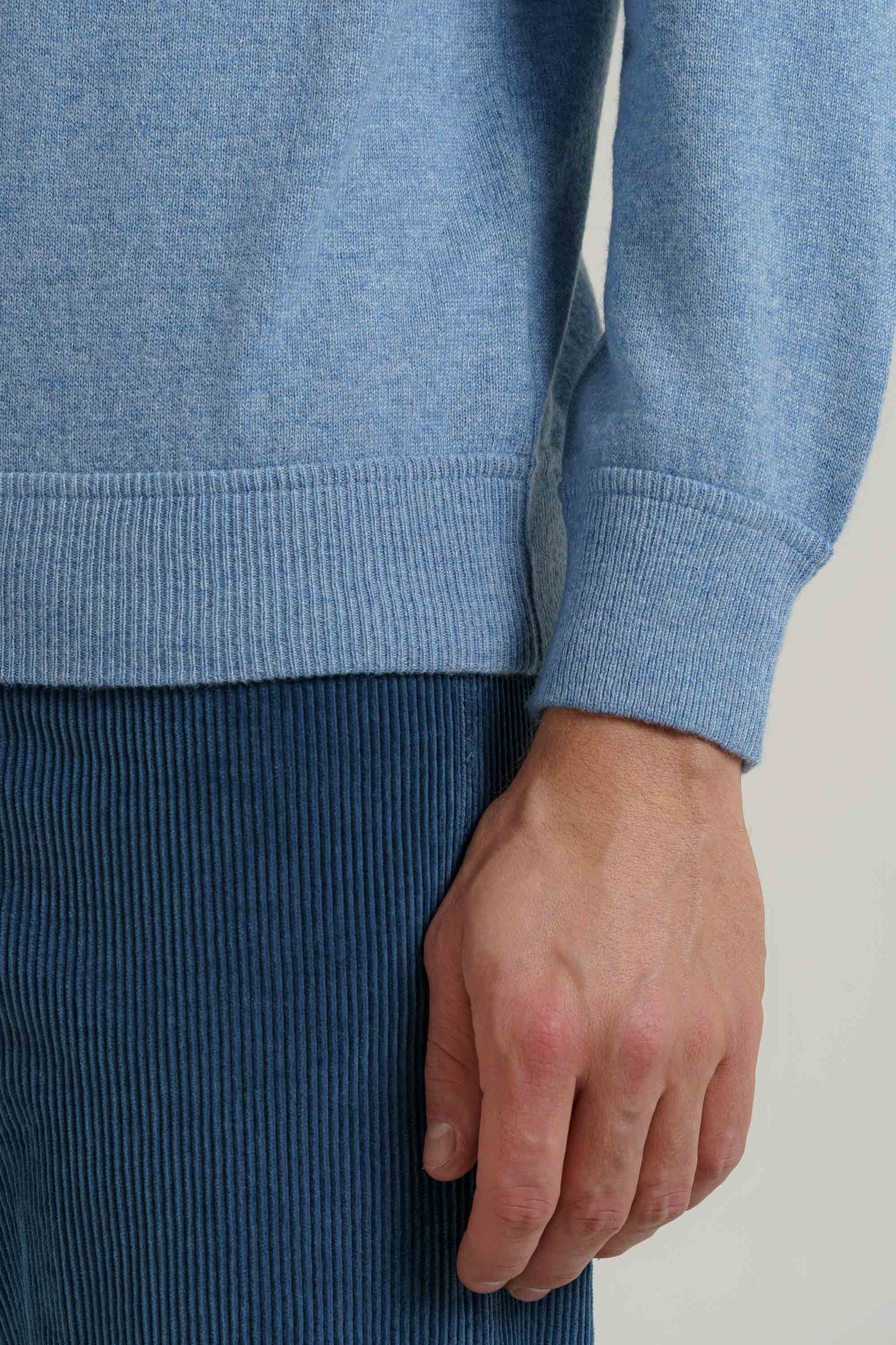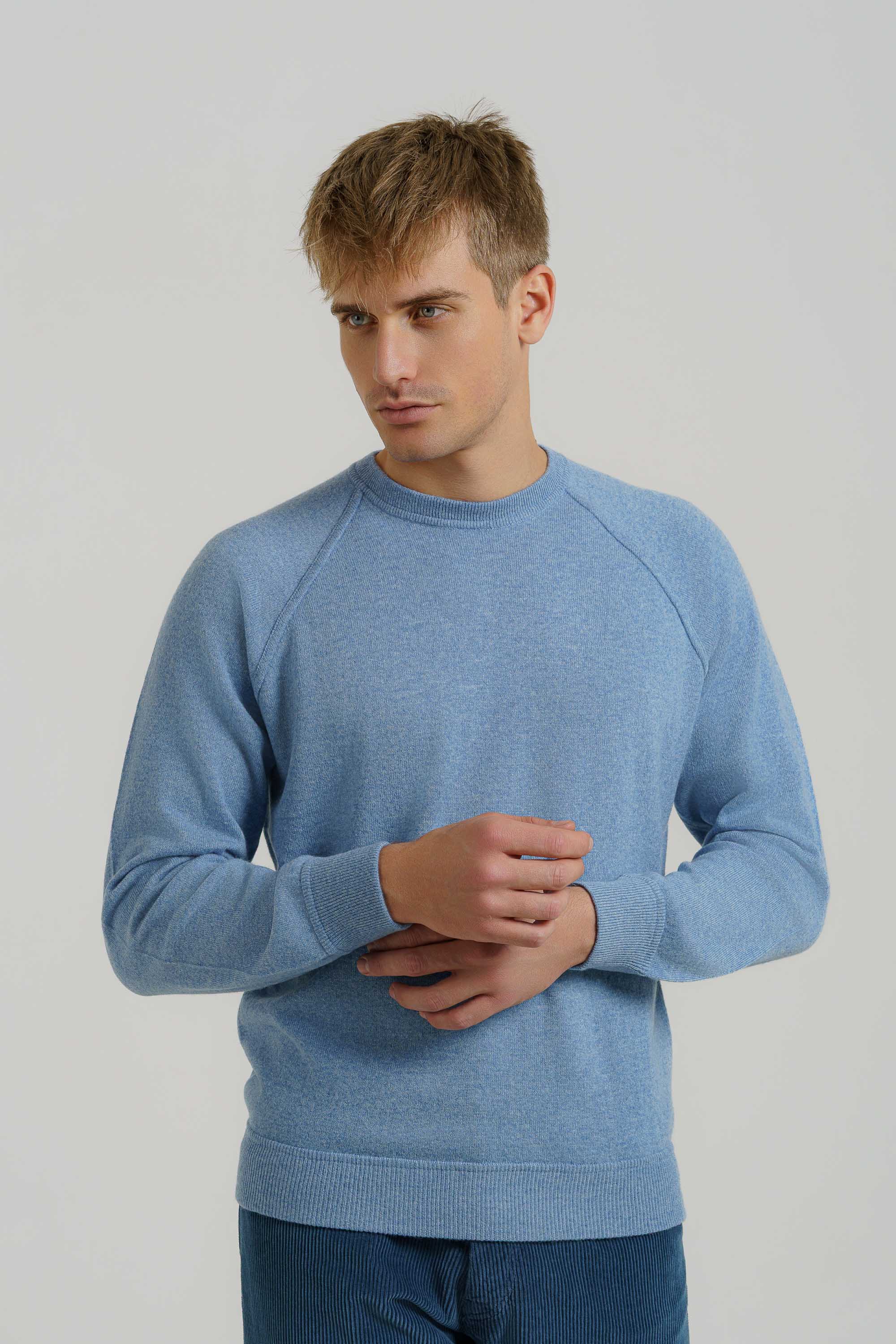 Pullover taglio fellpa, 100% cashmere , finezza 12, peso perfetto per l'inverno da portare anche come sotto giacca. Il modello è alto 1,85 e indossa la taglia 52