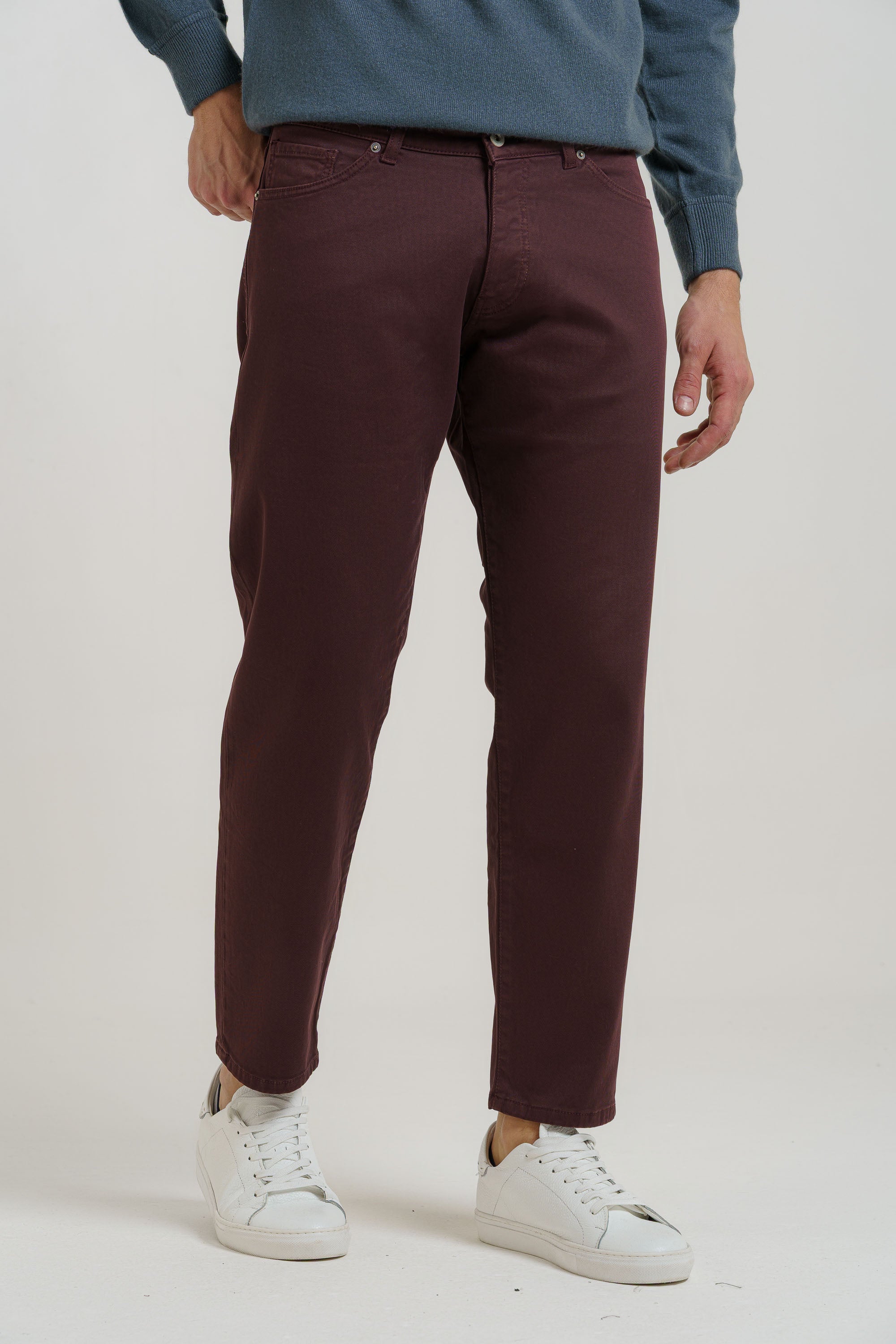 Pantaloni 5 tasche in bull di cotone vestibilità regular fondo cm.39