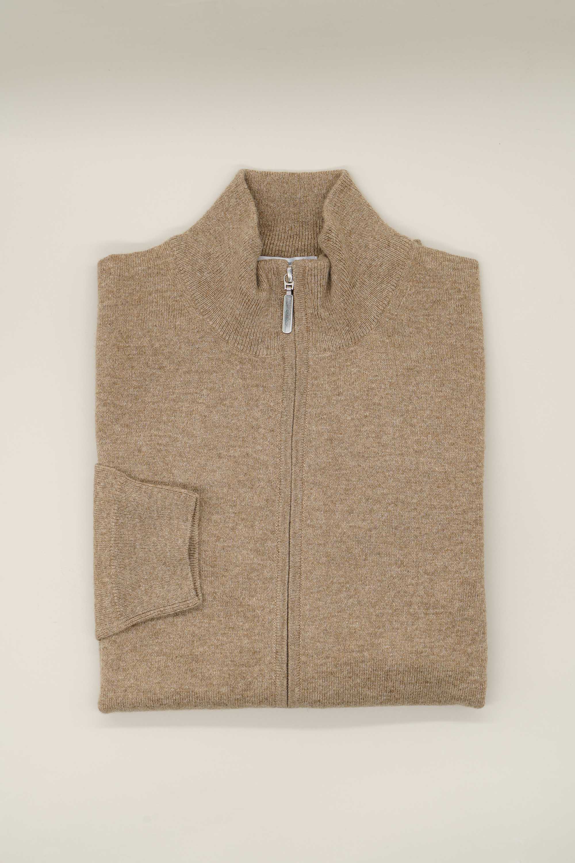 Cardigan full zip in purocashmere con doppio cursore, disponibile anche in versione mezza zip