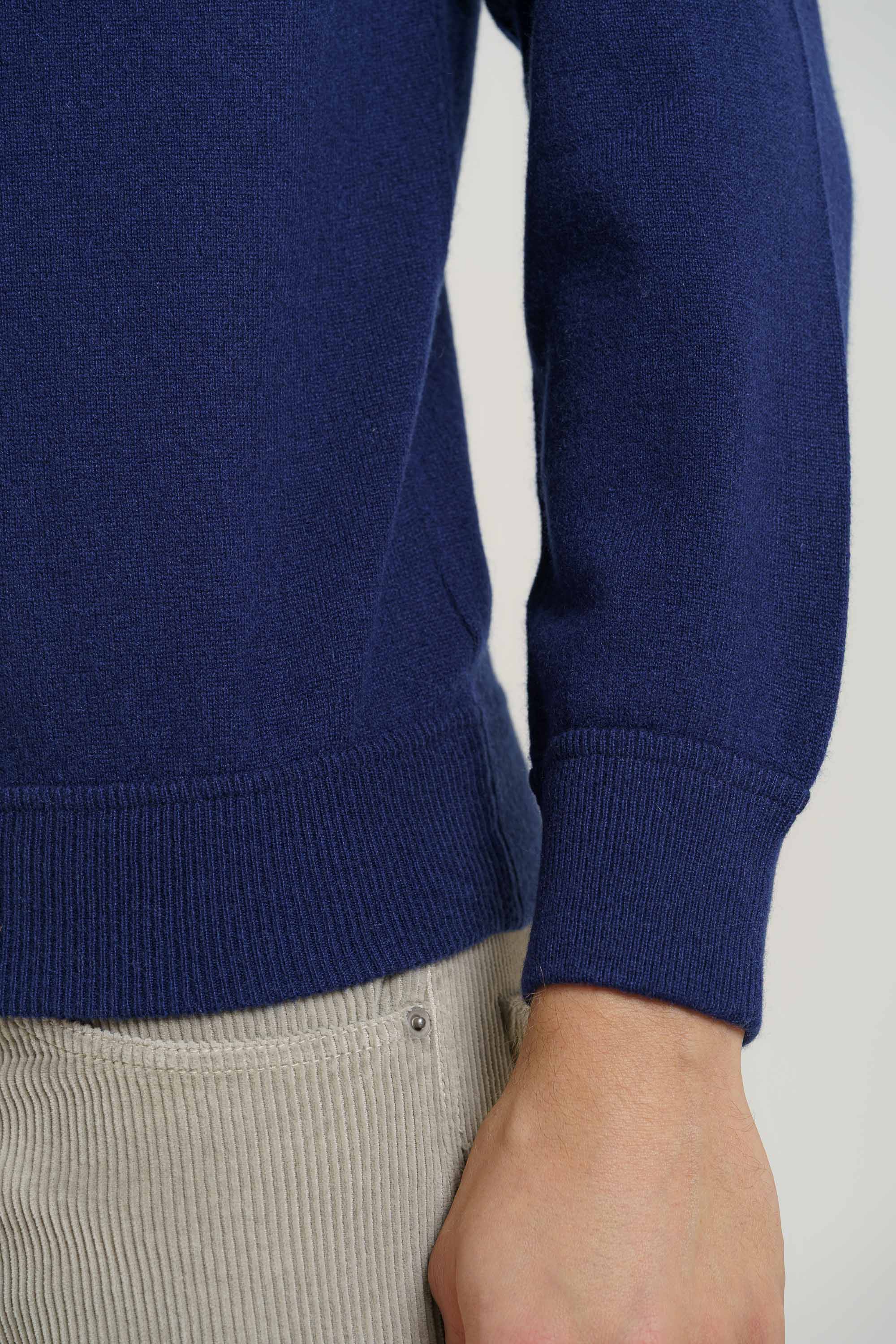 Pullover taglio fellpa, 100% cashmere , finezza 12, peso perfetto per l'inverno da portare anche come sotto giacca. Il modello è alto 1,85 e indossa la taglia 52