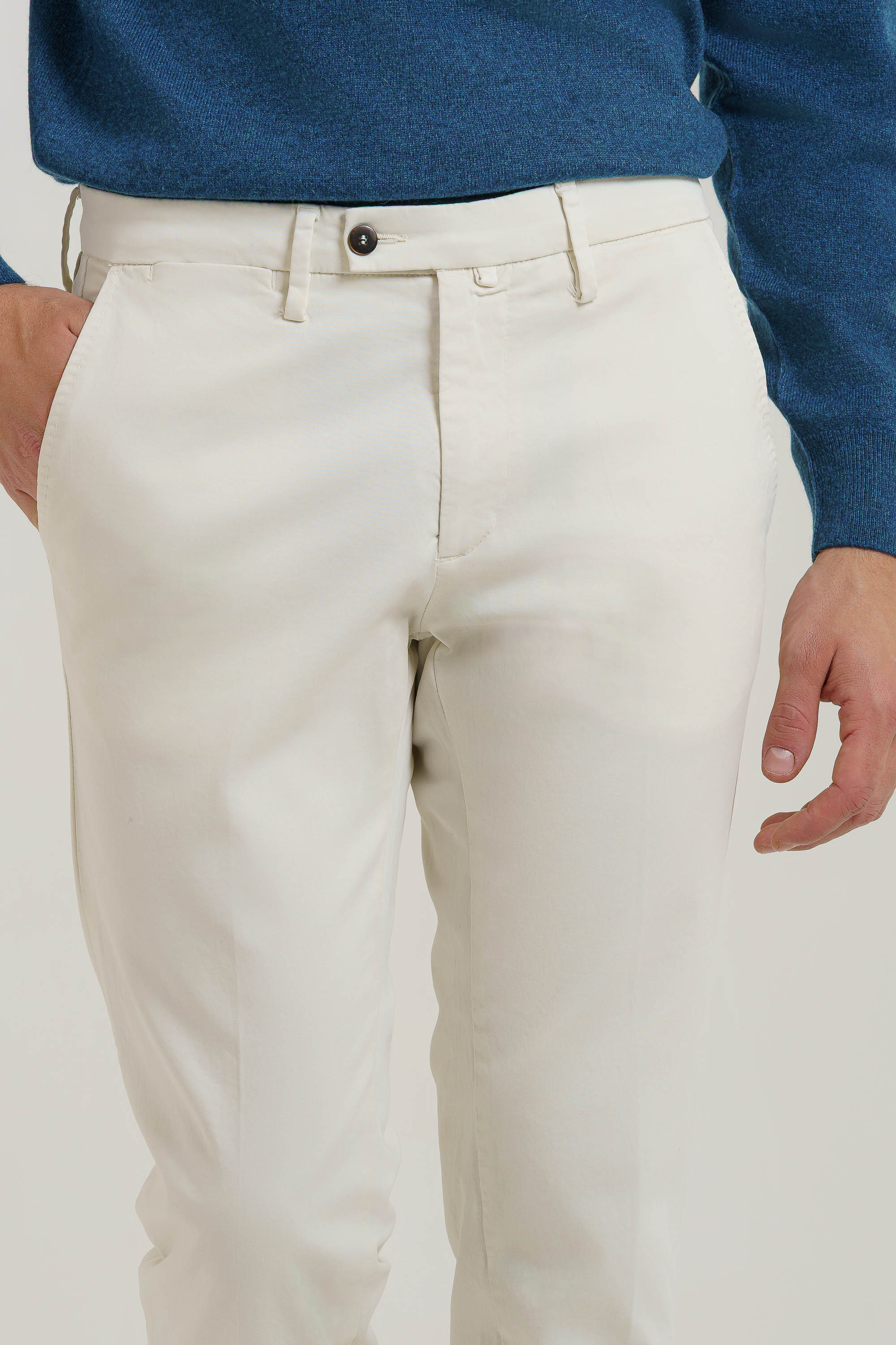Pantaloni tasca america, in raso di cotone , ventre piatto, disponibile in 7 varianti colore.