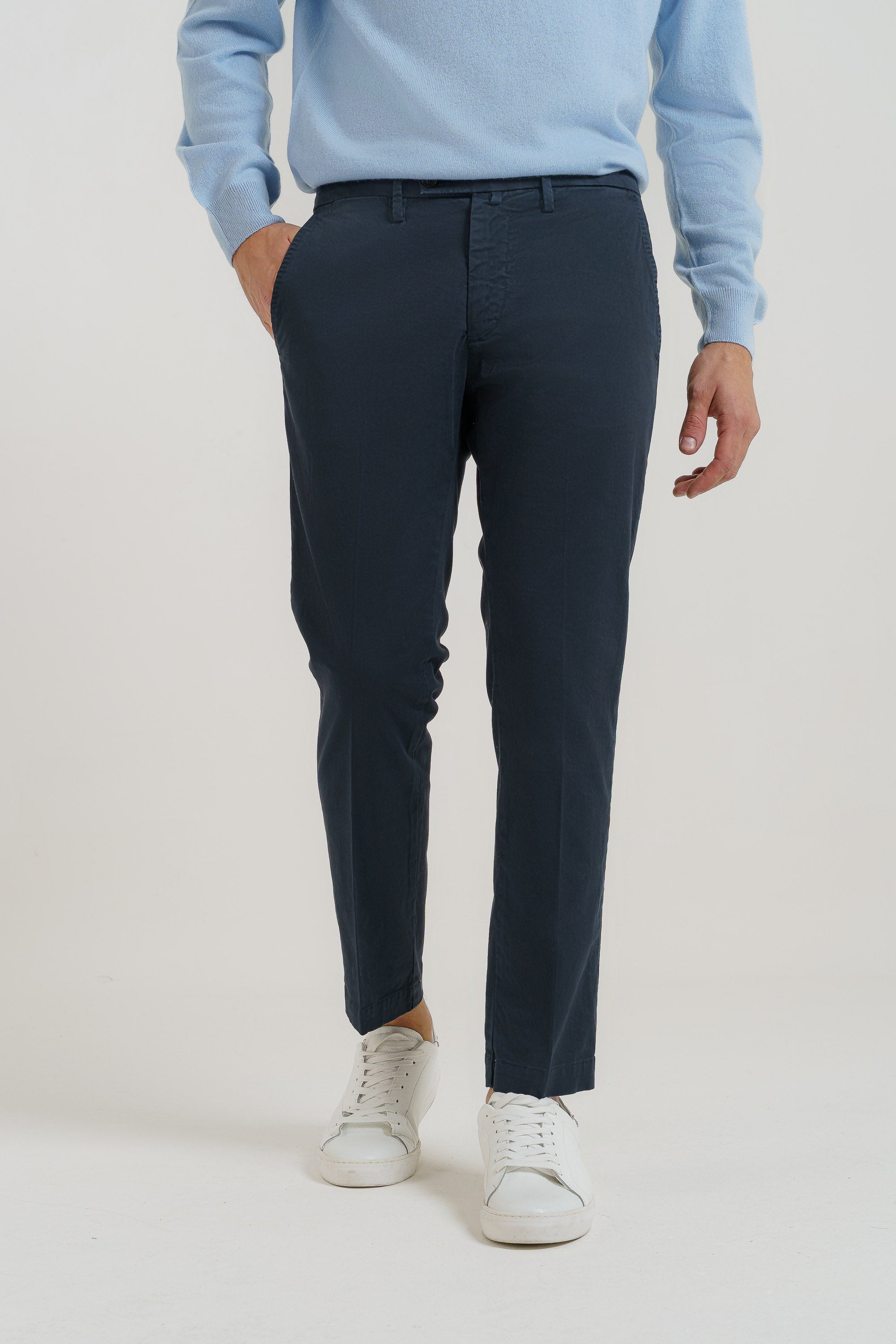 Pantaloni tasca america, in raso di cotone , ventre piatto, disponibile in 7 varianti colore.