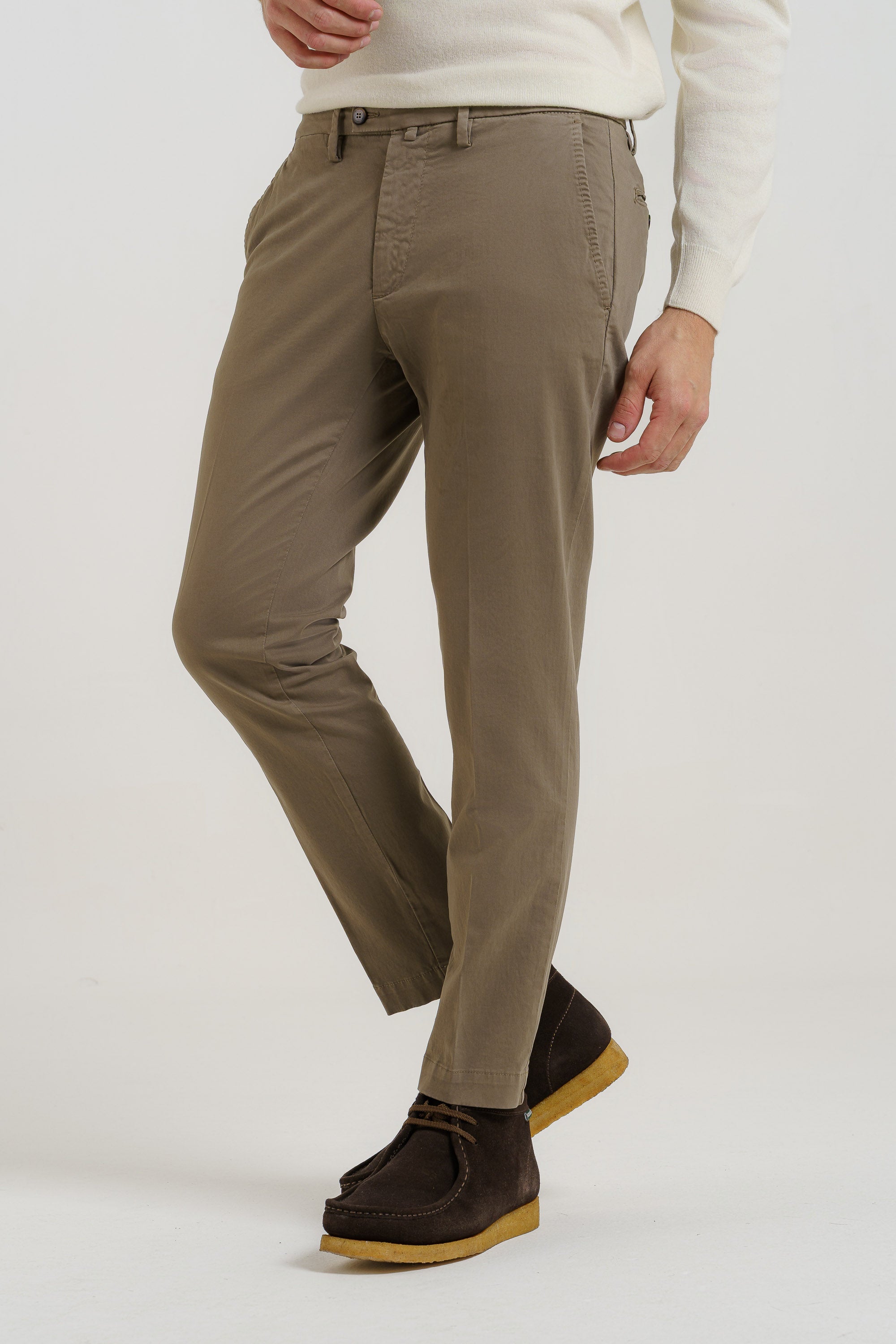 Pantaloni tasca america, in raso di cotone , ventre piatto, disponibile in 7 varianti colore.