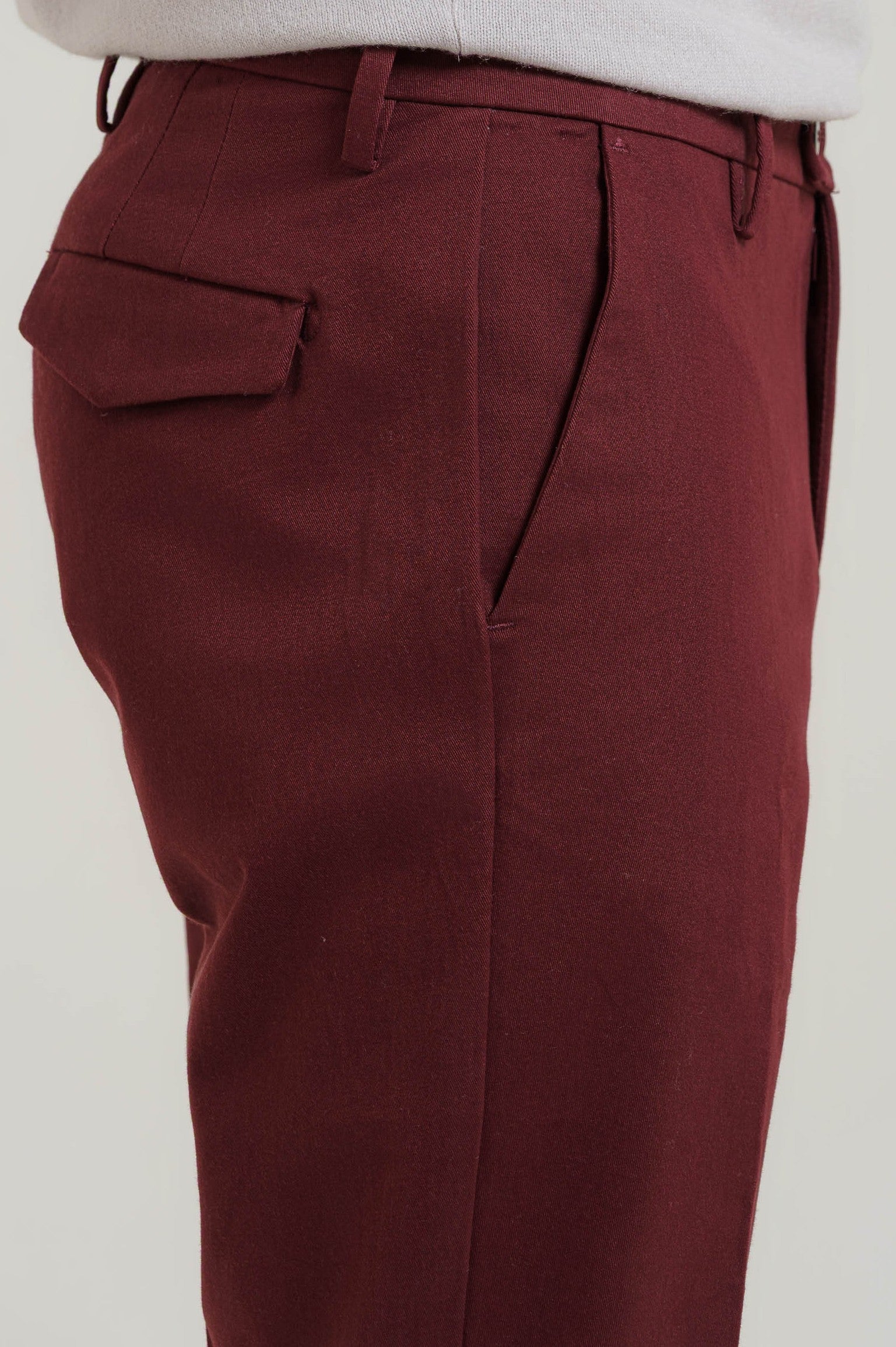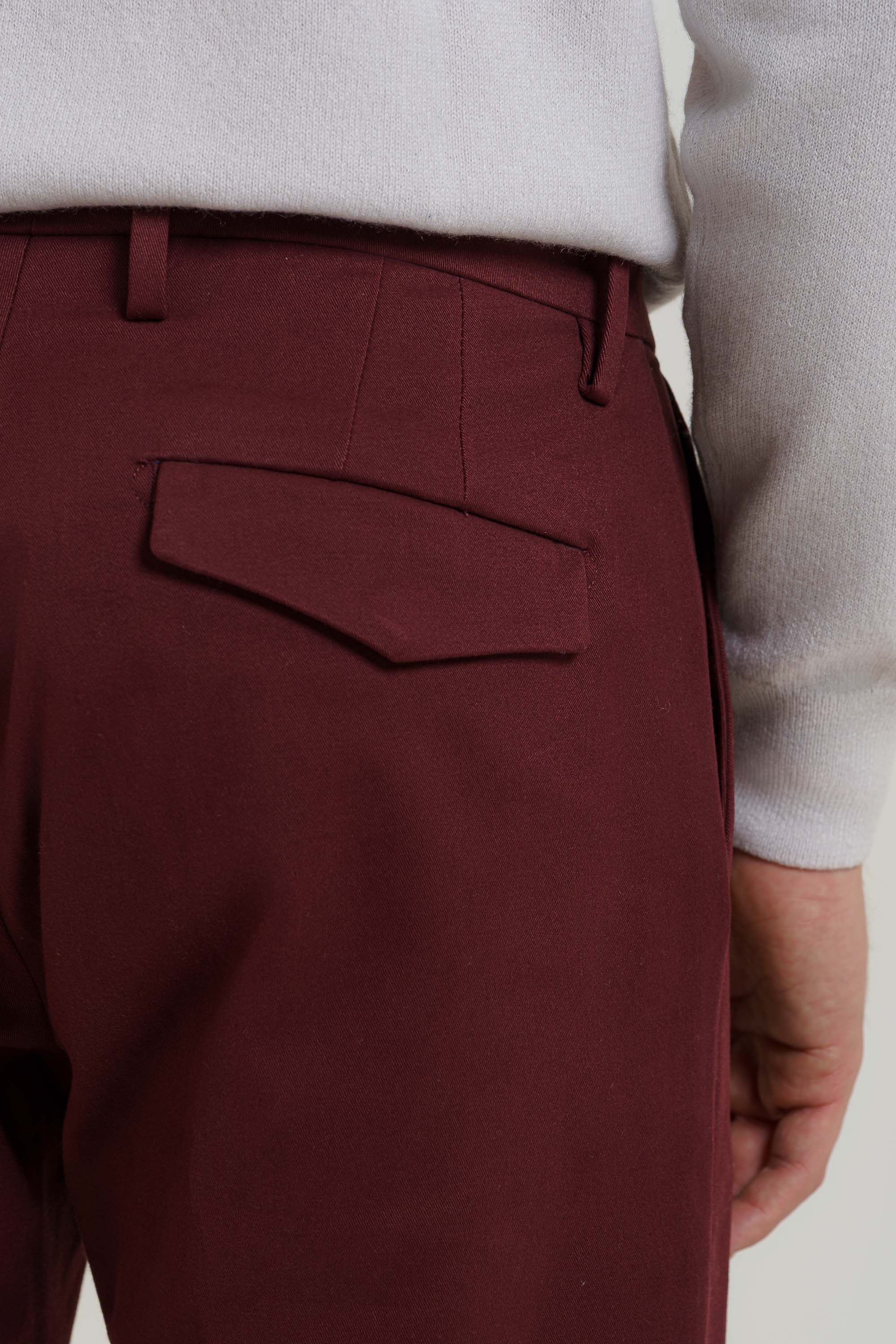 Pantaloni tasca america,ventre piatto in gabardina di cotone tinto pezza.
