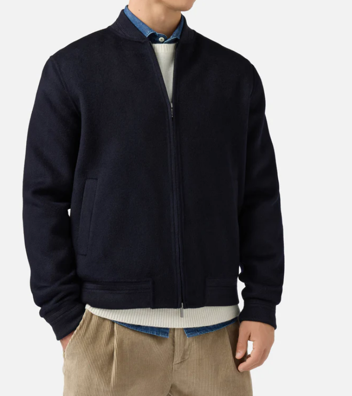 Scopri il bomber che unisce stile urbano e leggerezza, perfetto per ogni stagione. Bomber sfoderato Panno double misto lana Chiusura con zip Collo a bomber con bordo smacchinato 2 tasche a filetto laterali con chiusura bottone a pressione polsi e fondo con bordi smacchinati Ricamo logo centro dietro Vestibilità regolare Lunghezza media al bacino Composizione: 80% lana 20% poliammide