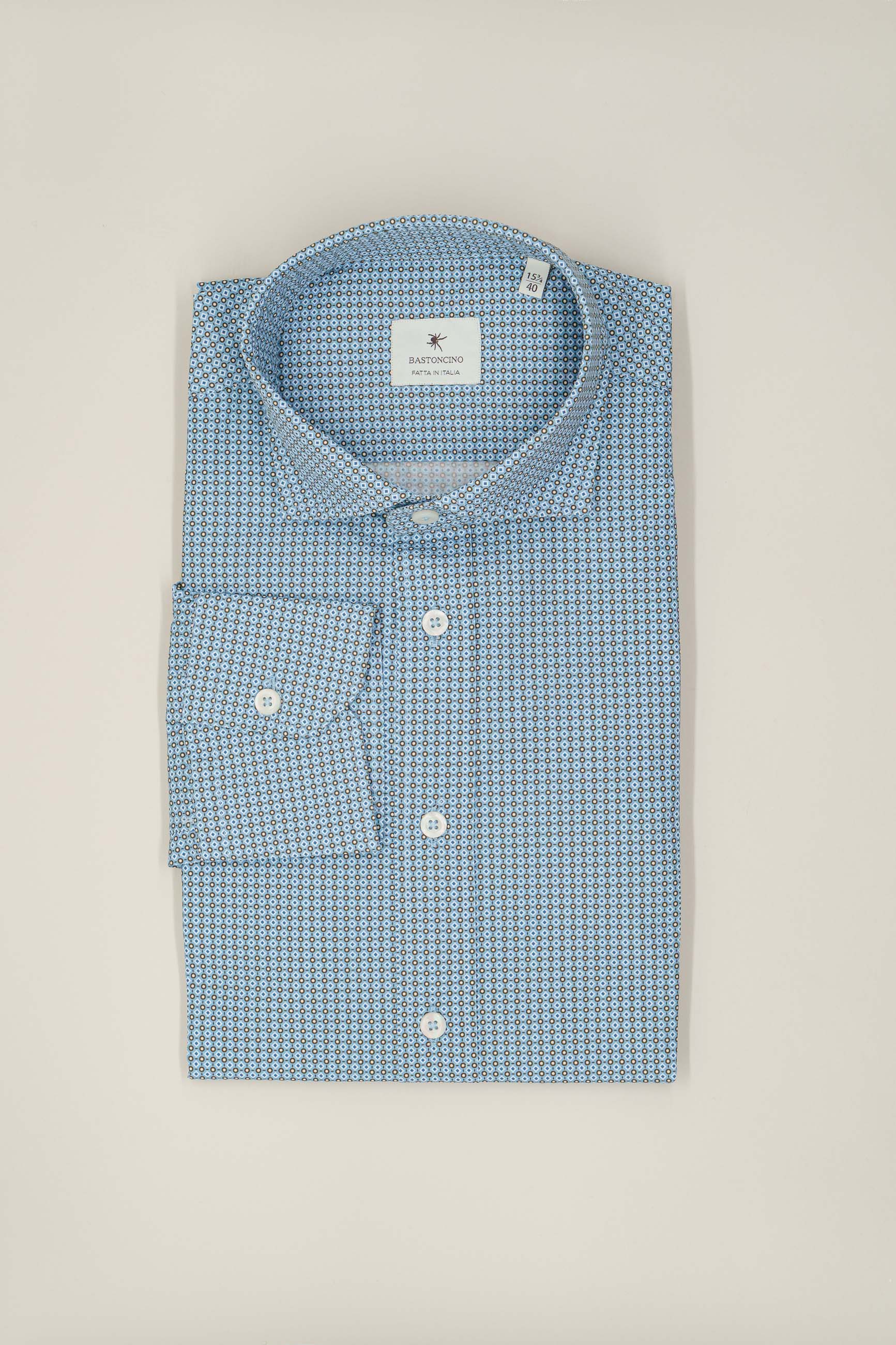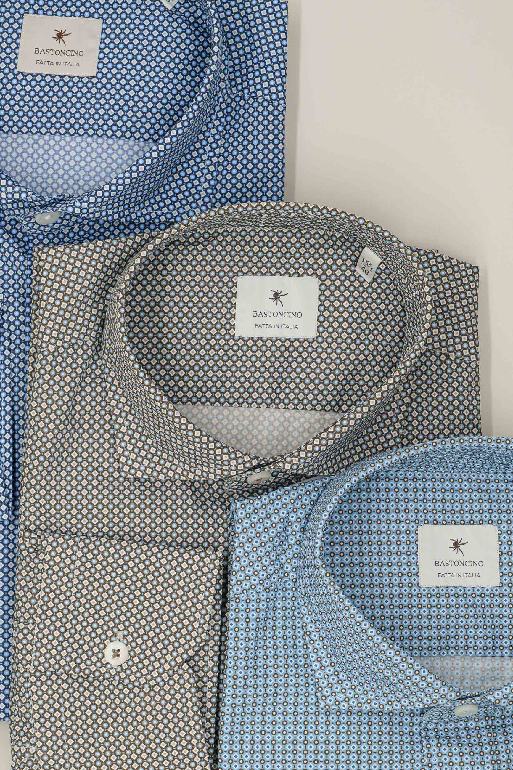 Camicia microfantasia in cotone, vestibilità slim. Un capo versatile, proposto in diverse varianti colore.