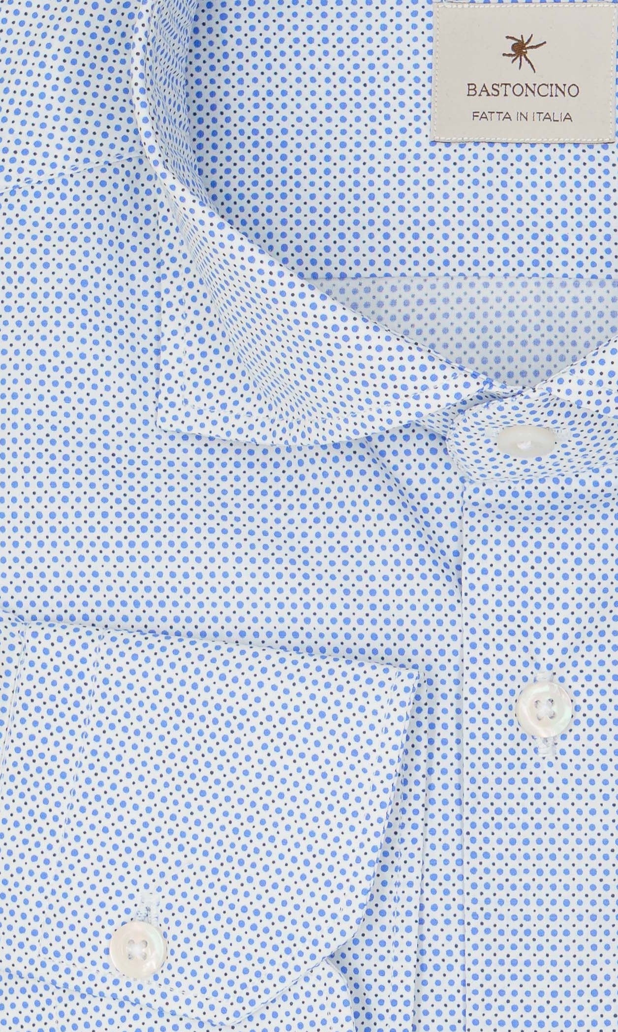 Camicia microfantasia in cotone, vestibilità slim. Un capo versatile, proposto in diverse varianti colore.