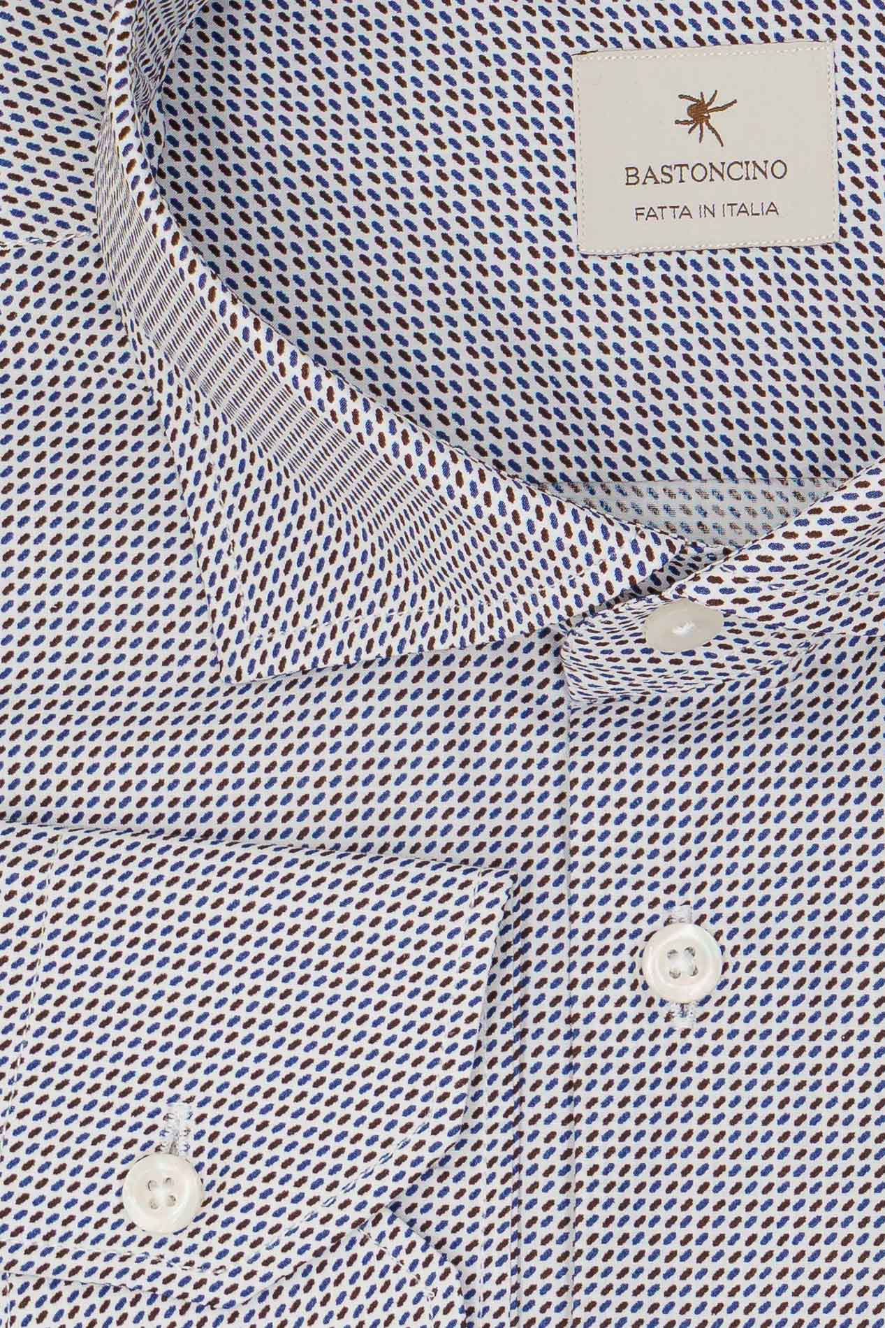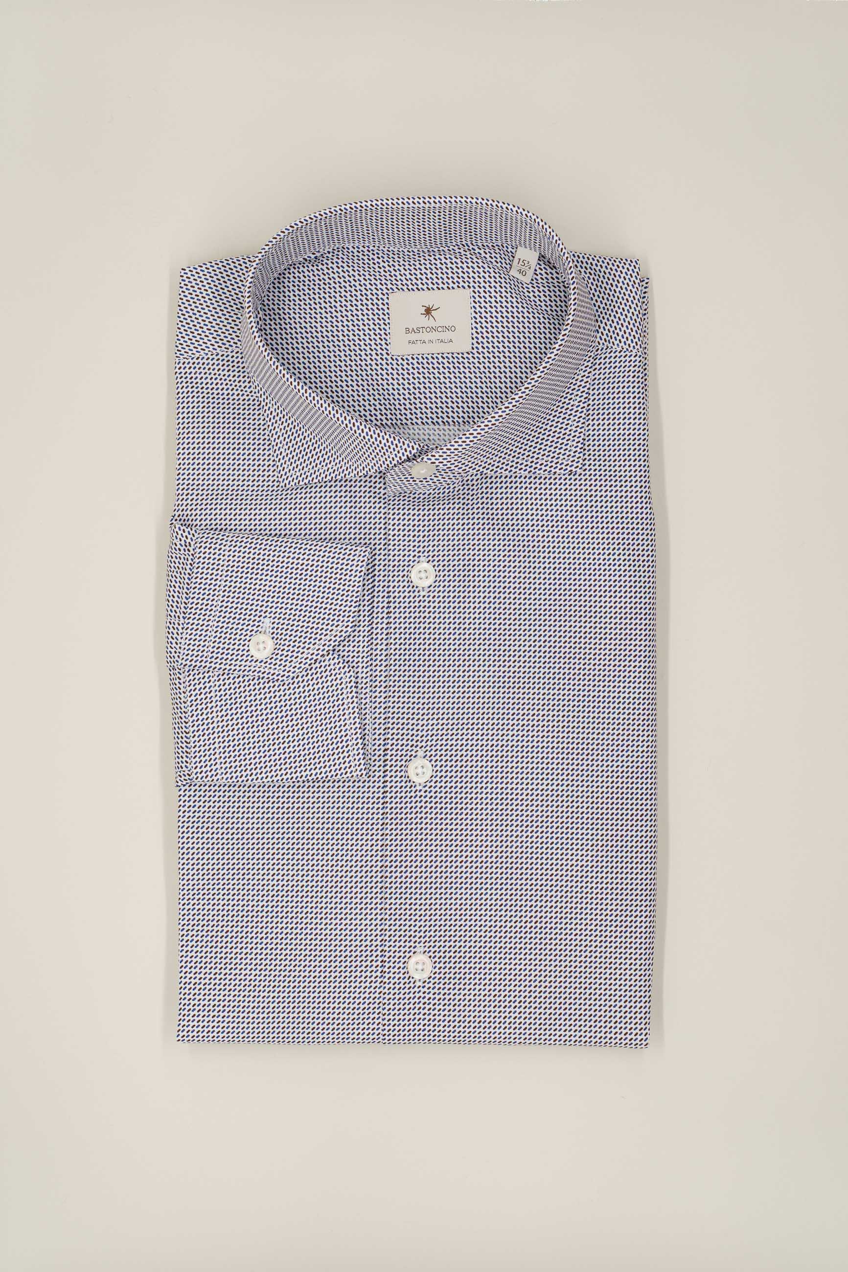 Camicia microfantasia in cotone, vestibilità regular. Un capo versatile, proposto in diverse varianti colore.
