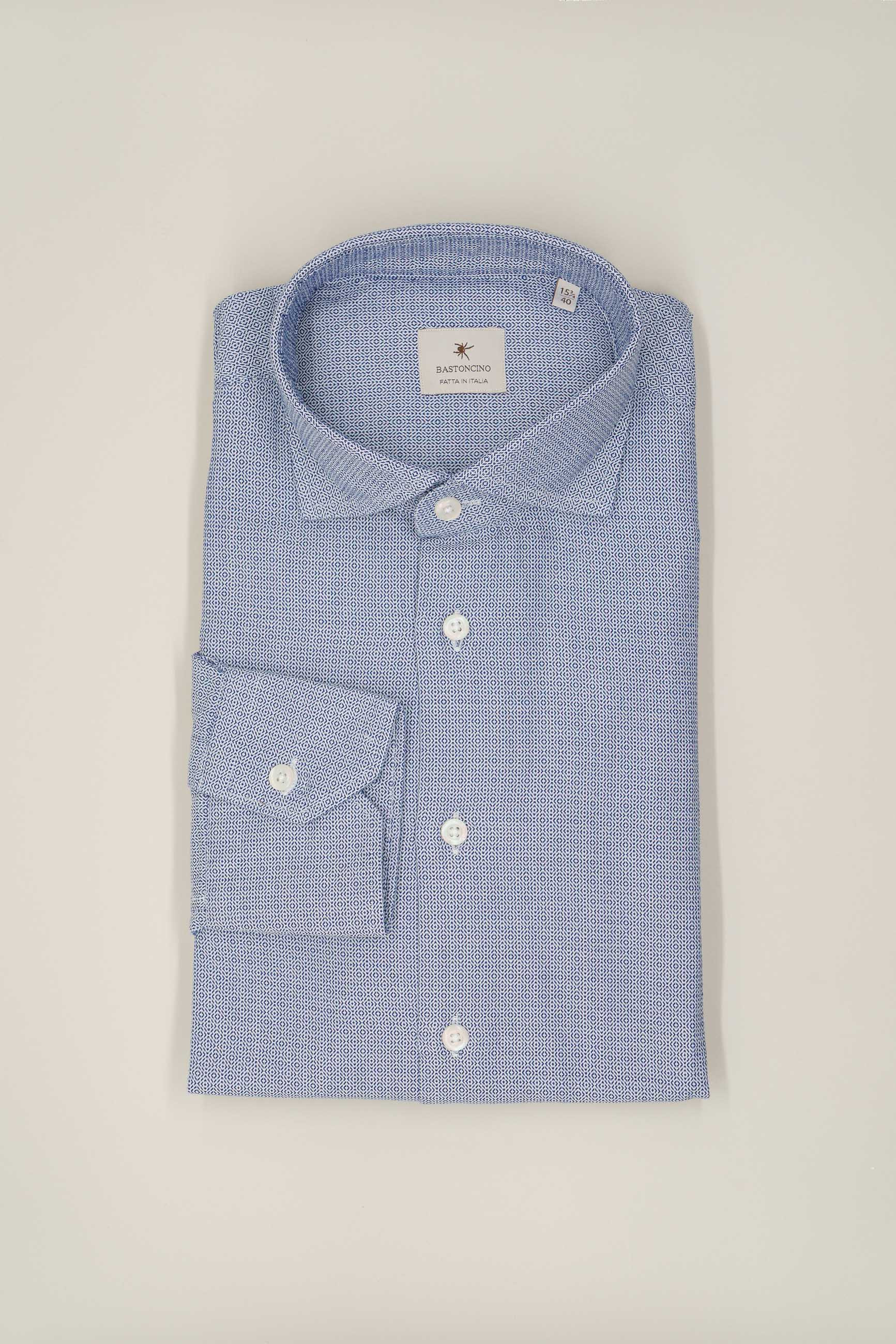 Camicia microfantasia in cotone, vestibilità regular. Un capo versatile.